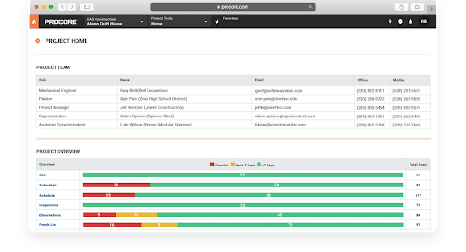 Other than its pricing model, Procore offers numerous solutions for efficient project management. These are digital forms, intuitive workflows, RFIs, project health dashboards, datasets, integrations with other apps, and more. The platform allows you to manage project correspondence, and give all parties involved a clear understanding of where every task is, and what needs to be done to close the project on schedule.