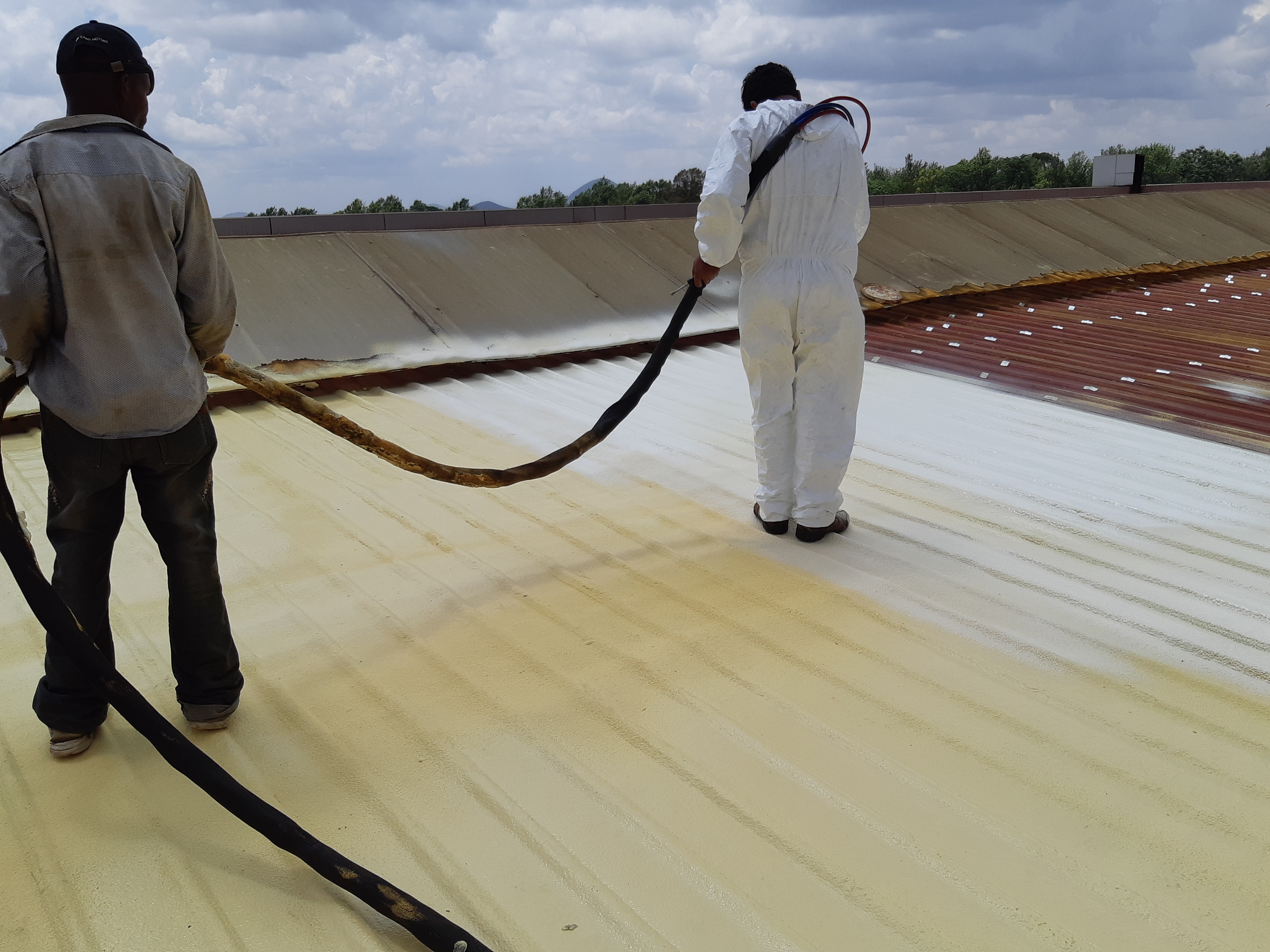 ELASTOSPRAY® spray foam is a closed-cell, rigid polyurethane foam. It is produced by an exothermic reaction between a polyol component and an isocyanate. At the end of the reaction phase, the foam begins to solidify and cure. Applied with a spray gun in several layers, ELASTOSPRAY® provides seamless thermal protection.