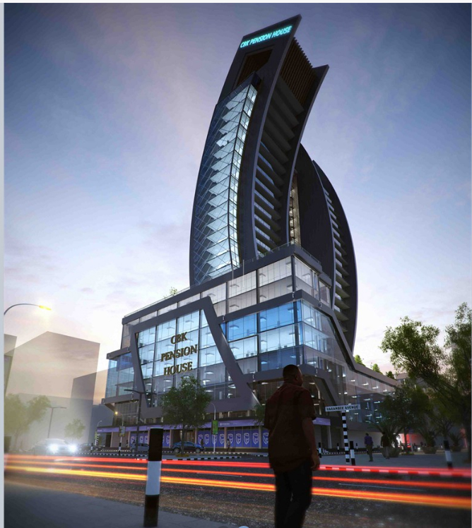 The CBK Pension Tower is located on Harambee Avenue in Nairobi, Kenya. The building will be 27 stories high and have 6 basement levels. It will join the tall buildings in Kenya that rank over 25 stories in height