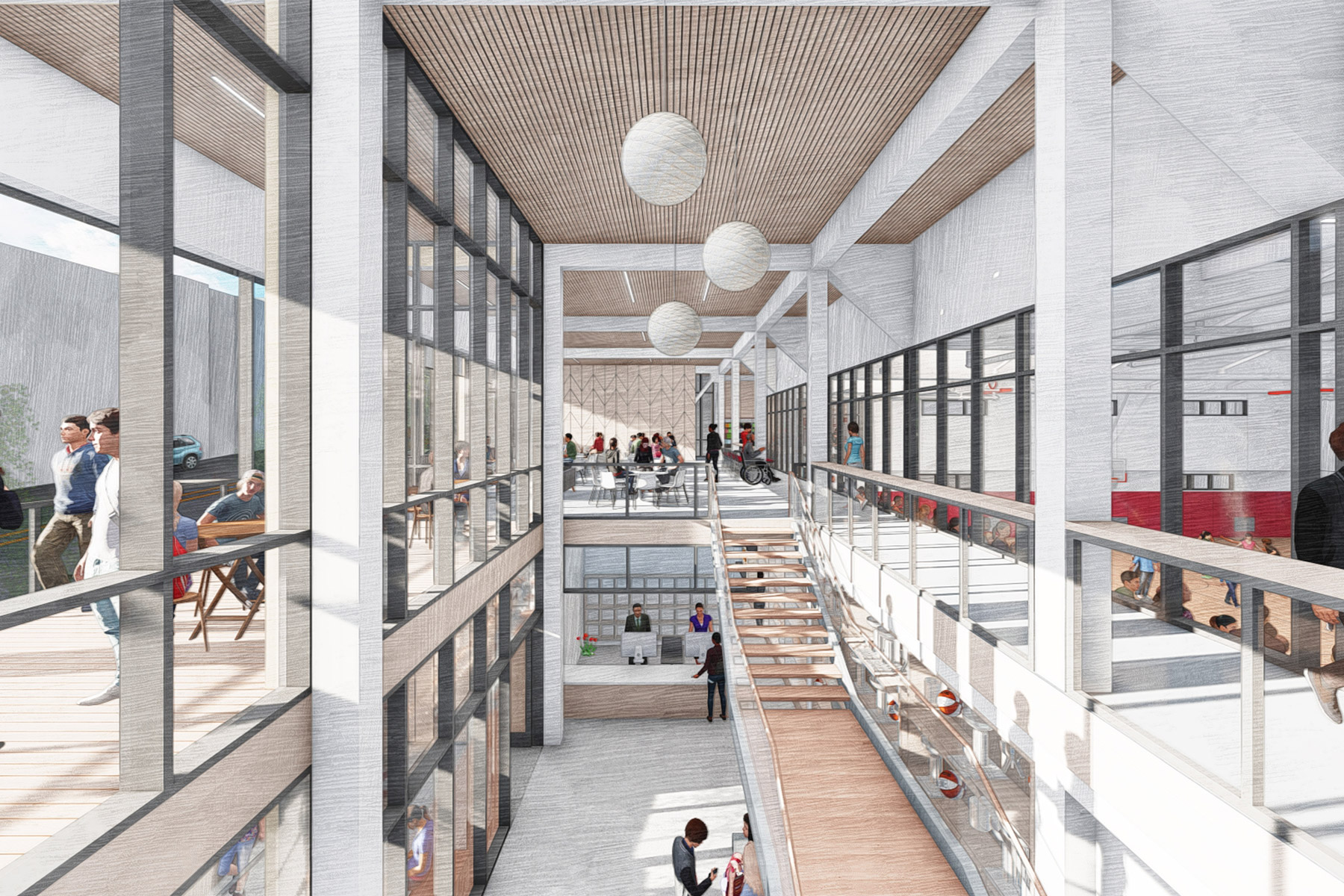 For over 40 years, San Francisco University High School (SFUHS) has excelled as a leader in secondary education in the Bay Area, building strong and deepening ties among its students, teachers, administrators, families, alumni, and the larger community. This will be the school’s first ground-up project, which will support reorganizing and re-energizing their existing four building campus. The new facility will replace a 1940s-era strip mall, an L-shaped building with onsite parking which had occupied the location. As an urban infill project, the building will add density to an underused site, provide a public face for the campus on a transit-rich, mixed-use street, and enrich the public life of the block.