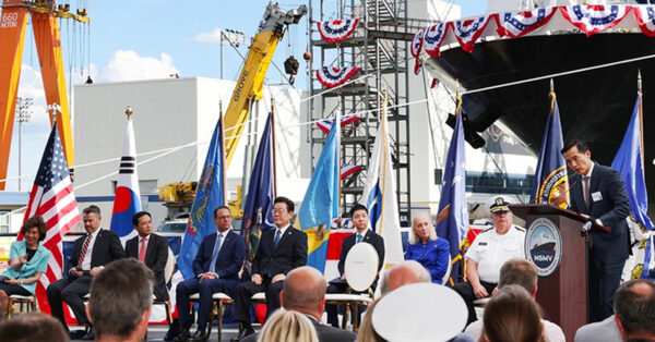 This christening ceremony today is a testament to our two nations collaborating side by side to reindustrialize for our common prosperity and security,” Kim said. “We are creating good-paying manufacturing jobs, building the world’s most advanced ships, and producing a new skilled workforce here in America. This is just the beginning. Hanwha is committed to building the next chapter in American shipbuilding.”.