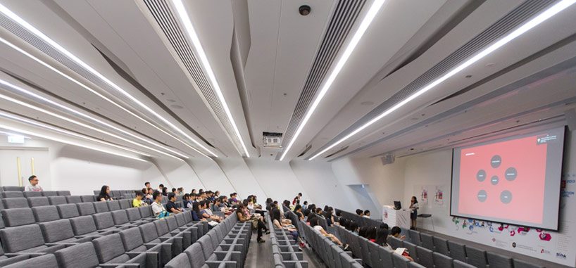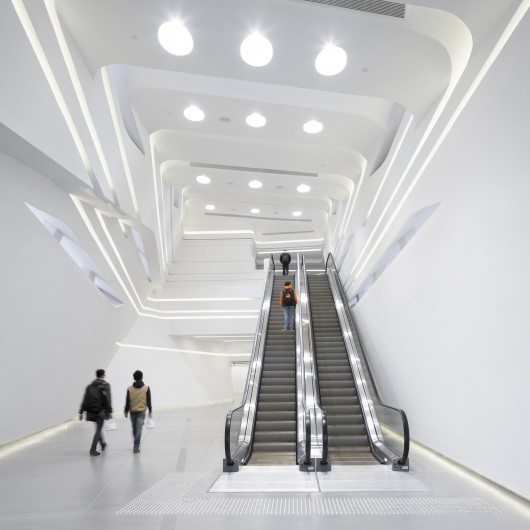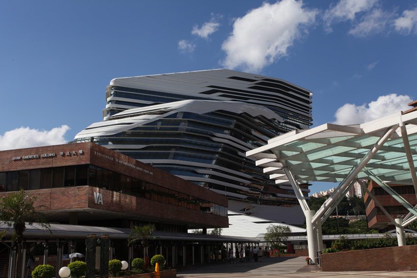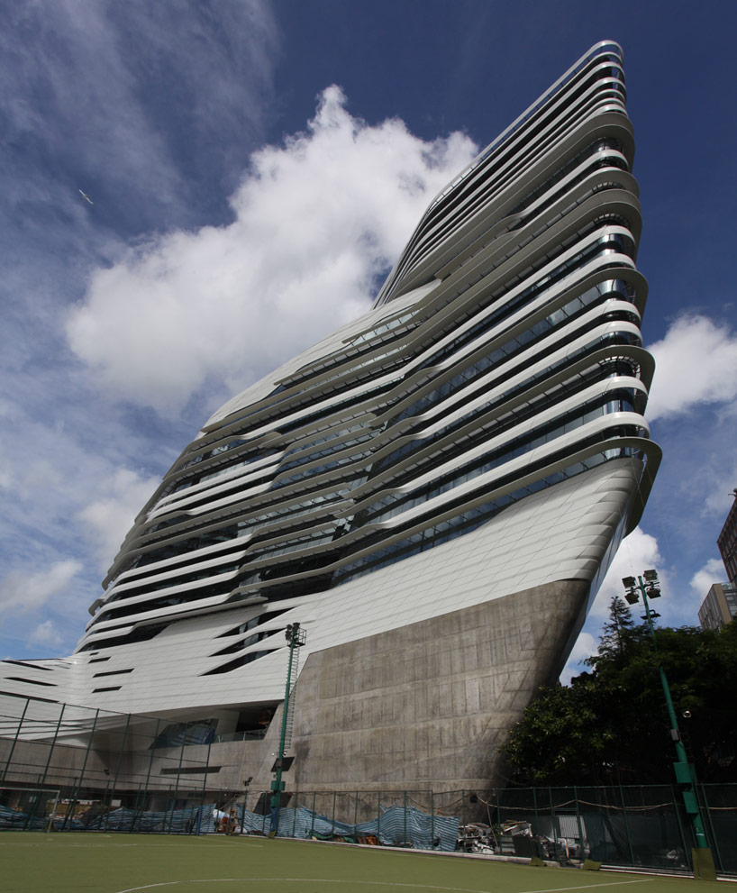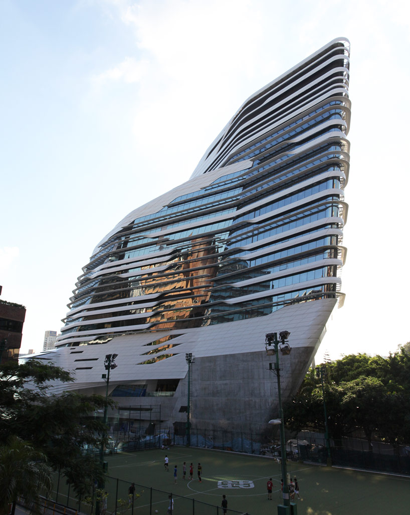 Zaha hadid architects has finalized construction of the hong kong polytechnic university’s jockey club innovation tower. Located on a narrow, irregular site at the northeastern tip of the university campus (bordered by the university’s football ground to the south, and the Chatham Road/ Kowloon Corridor motorway interchange to the north), the JCIT is connected to the heart of the campus; encouraging the university’s various faculties and schools to develop multidisciplinary initiatives and engagement with the community, government, industry, NGO’s and academia.