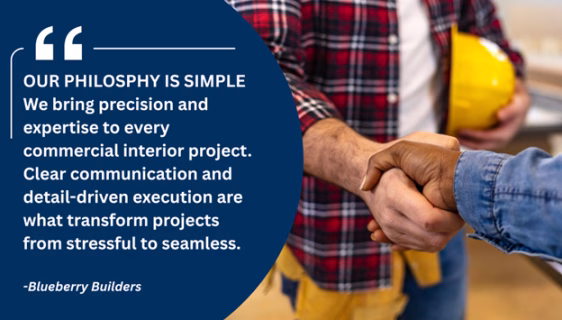 | Blueberry Builders | Boutique, detail-oriented, strong focus on pre-construction planning | Office, hospitality, restaurants |