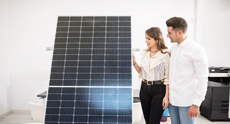 couple in an establishment decide on buying solar panels for their home