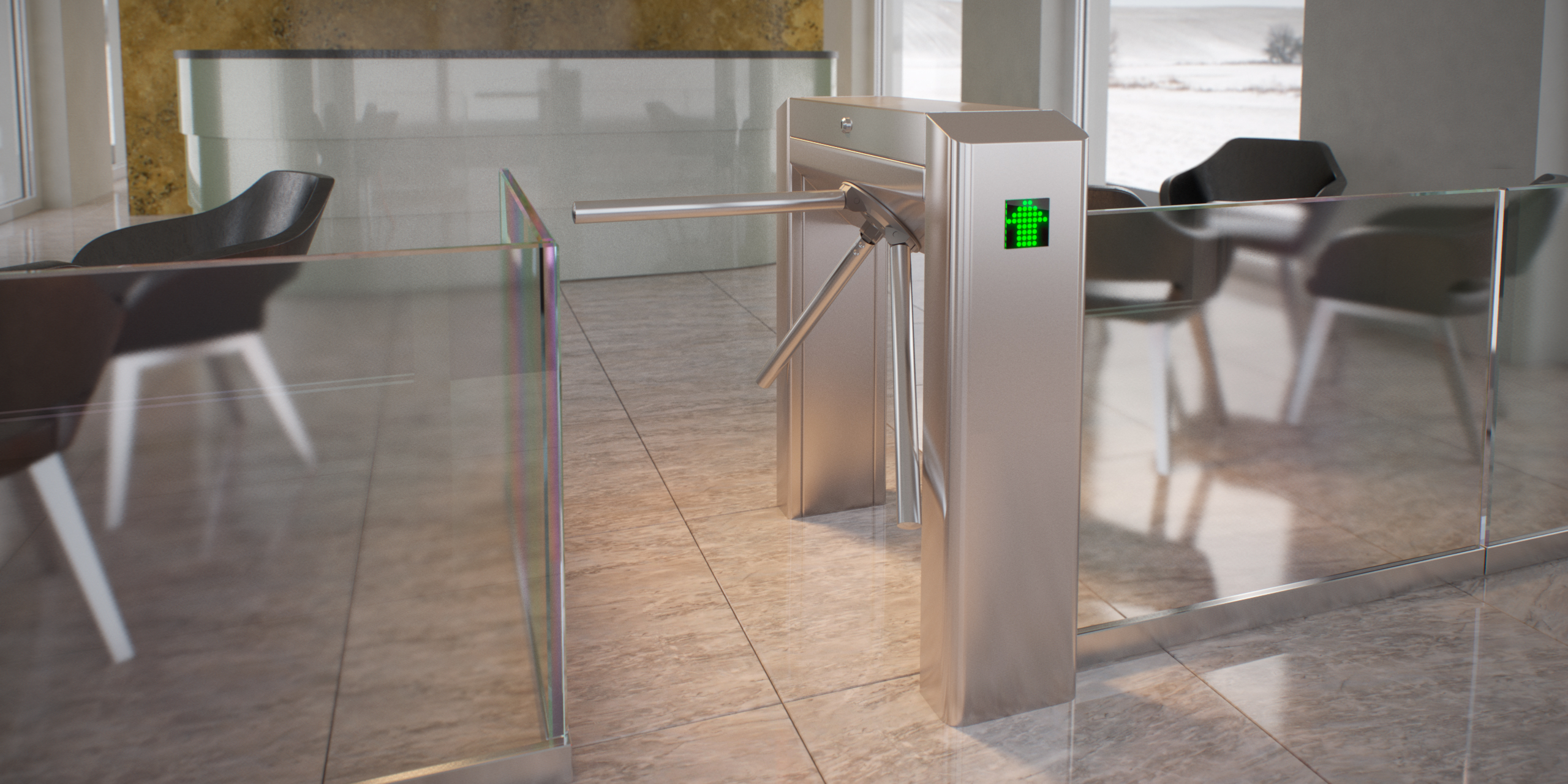 Readers installed with the turnstiles allow users to present their own credentials to gain entry. The self-validation function lessens the burden on receptionists and security guards, allowing them to focus on their primary job functions instead of having to verify credentials.