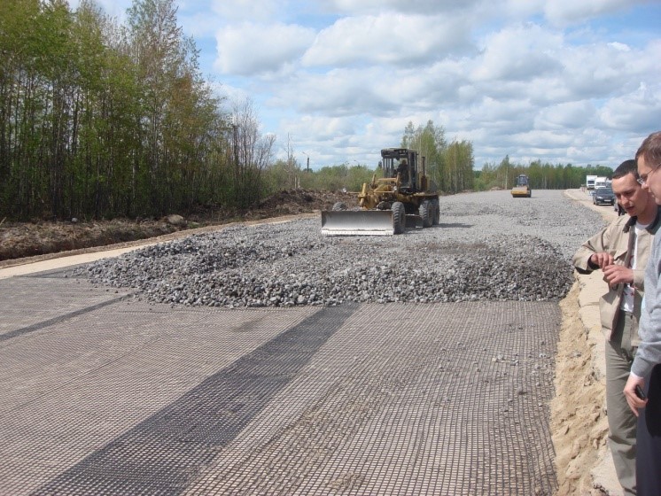 Geosynthetics like stabilisation geogrids, improve the overall stiffness of the pavement layers. They also prevent lateral spreading of the base, increase the confinement and improve the vertical stress distribution on the subgrade.
