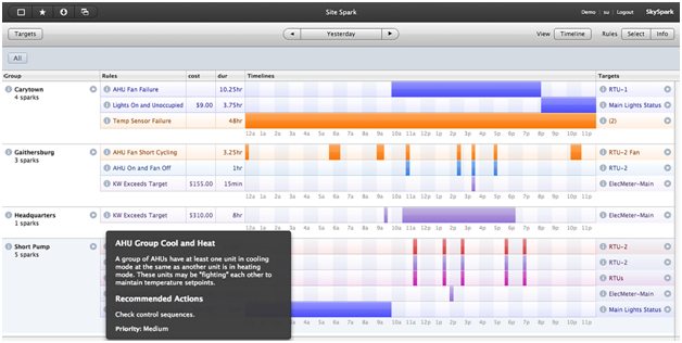 Virtually all buildings, both old and new have operational issues. The challenge is to find them in order to eliminate waste, cost and comfort impacts. SkyFoundry’s advanced analytics technology make is possible to take advantage of this data to identify operational issues and achieve improved performance. Today, the software is deployed across over 8200 buildings worldwide.