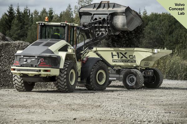 Volvo Construction Equipment demonstrated its prototype autonomous wheel loader and articulated hauler working together at the company’s Xploration Forum in Eskilstuna, Sweden.